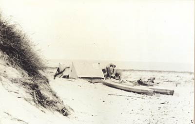 Blick von der Düne auf unser Lager und auf die Spitze,