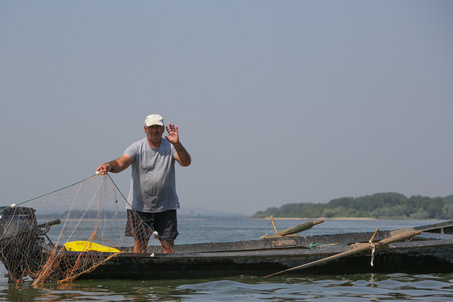 Dieser freundliche Fischer hingegen nutzt den Tag, um sein bescheidenes Auskommen zu sichern. Leider werden die kleinen Fische nicht in die Donau zurückgesetzt. In der Armut ist sich hier jeder selbst der Nächste und will nicht eine nachhaltige Fischerei betreiben.