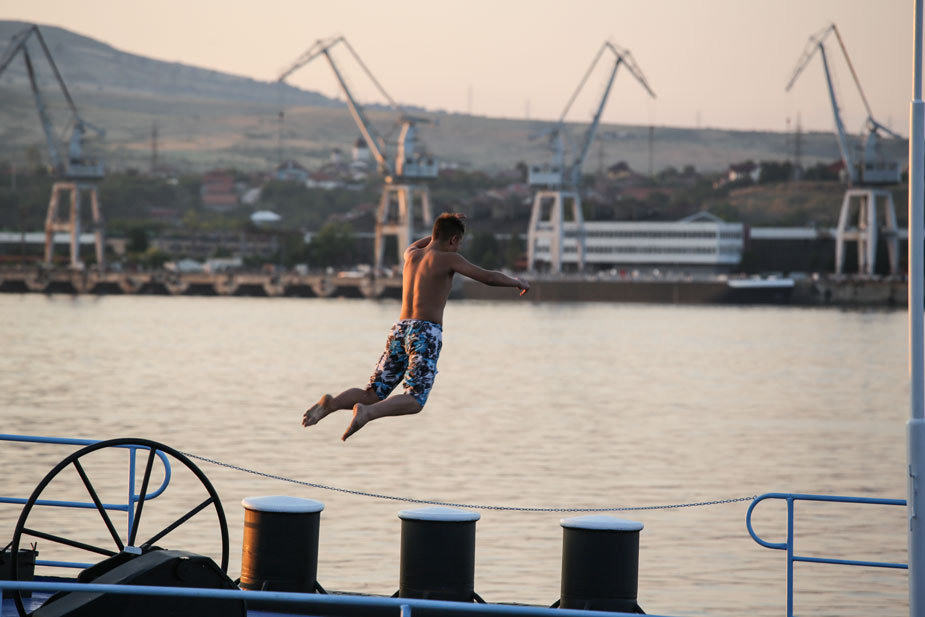 Sprung in die Donau. Am nächsten Tag geht es auch für mich auf den Fluss. Das Faltboot ist bereits aufgebaut, wird sich alles Gepäck unter Deck verstauen lassen?