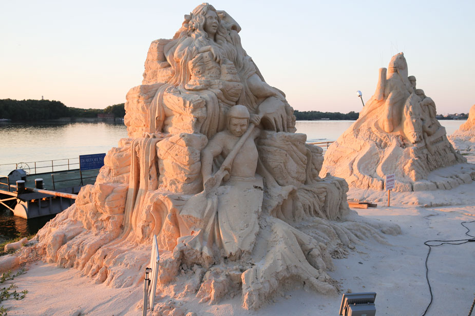 Am Donauufer begrüßte uns eine Sandskulpturen-Ausstellung zum Thema "Anti-Doping".