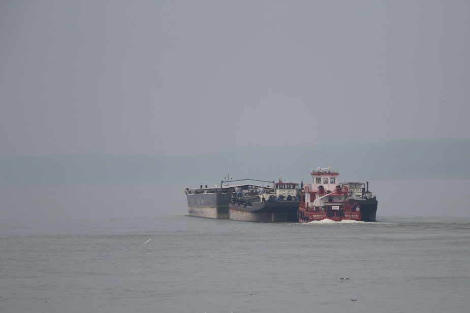 Die Schubverbände, die auf der unteren Donau unterwegs sind, können gigantische Ausmaße annehmen. Hier ist ein eher kleiner Verband zu sehen.