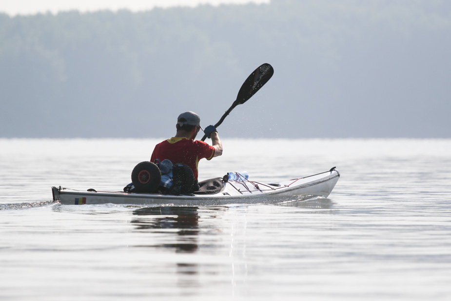 Marius aus Rumänien lässt es sportlich angehen. Zuvor hat er mein Grönlandpaddel getestet und hat es nun eilig.