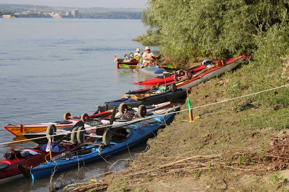 Anlegen an der rumänischen Grenzkontrollstelle. Nach drei Stunden dürfen wir endlich einreisen. Die Frühstarter müssen zur ungewohnten Mittagszeit aufs Wasser.