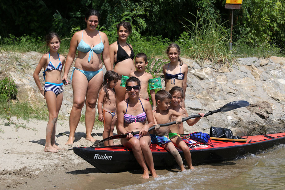 An einer Badestelle in Serbien musste ich mir nach einigen Stunden Fahrtzeit ein wenig die Beine vertreten. Sofort war ich von Kindern umringt, die wiederum ihre Mutter riefen, dass sie Fotos machen solle. Zu meinem Schrecken wurde sofort mein Boot "besetzt". Es hat zum Glück keinen Schaden genommen.