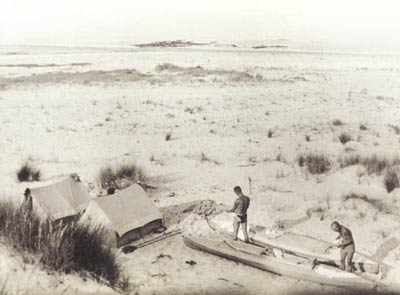 Blick von der Düne auf unser Lager und auf die Spitze,
