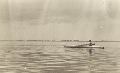Seiten-Übersicht: Erst spät zwang uns die Flut, in einem kleinen Graben des Asseler Sandes die Landung zu versuchen. Ein schöner Zeltplatz! Am anderen Mittag ging´s weiter.
