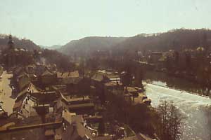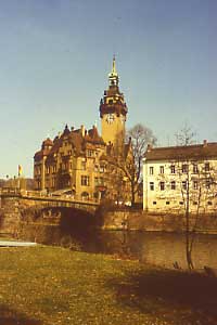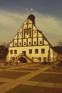 "Waldheim an der Zschopau ist 'ne hübsche kleine Stadt..." - schade, dass wir so wenig Zeit haben, uns dort richtig umzusehen. Dabei gibt es so viel zu entdecken. Allein das Rathaus lohnt jedem Jugendstil-Freund eine weite Reise. Dass man hinter der Jugendstil-Fassade viel für die paddelnde Jugend übrig hat, ist für die Fahrtenleitung der ZMF Jahr für Jahr spürbar. So werden seit einigen Jahren Mitarbeiter der Stadt unterstützend beim Aufbau der Slalomstrecke tätig. In Waldheim hat man den beiderseitigen Vorteil erkannt: Eine solch traditionsreiche Natursport-Veranstaltung hebt schließlich auch das Image einer Stadt, deren größtes Pfund die malerische Umgebung ist. So finden sich Hinweise auf die ZMF in vielen Bildbänden über das Zschopautal, als dessen Perle Waldheim gilt. Früher anreisende Kanuten sollten nicht ihre Wanderschuhe vergessen. Ein Gang zur Burg Kriebstein oder über die Höhenzüge rund um Waldheim bieten Naturerlebnisse in einer Gegend, um die der Massentourismus einen Haken schlägt.