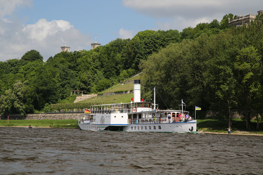 Der 1929 auf der Werft in Laubegast erbaute Personendampfer "Leipzig" ist neben dem Schwesternschiff "Dresden" der größte Seitenrad-Schaufeldampfer der Sächsischen Dampfschifffahrt. Er ist 69,6 Meter lang, die Maschine leistet 350 PS.